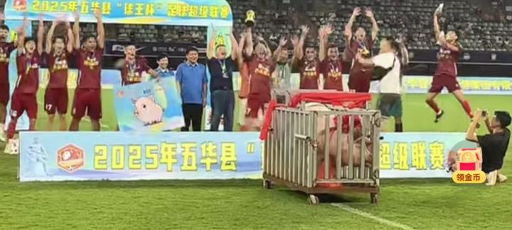 梅州五华“县超”落幕,横陂队夺冠奖励是一头400斤重的猪